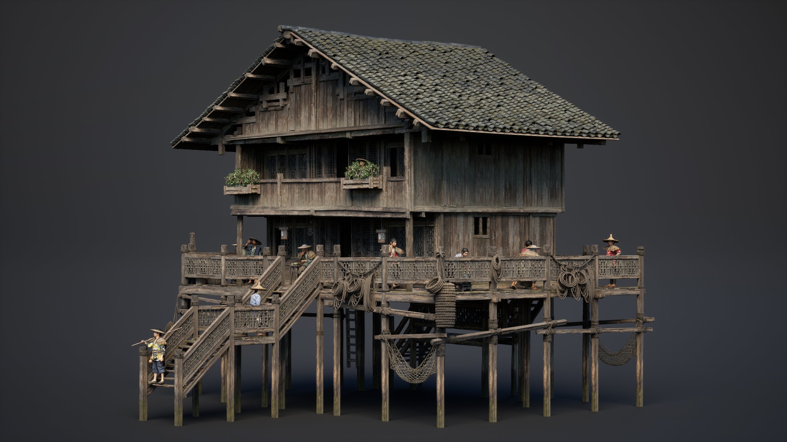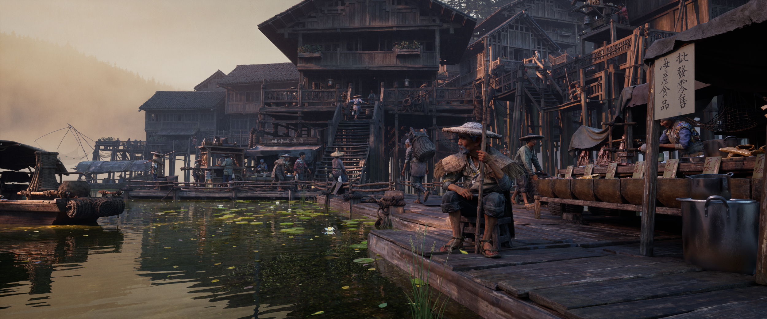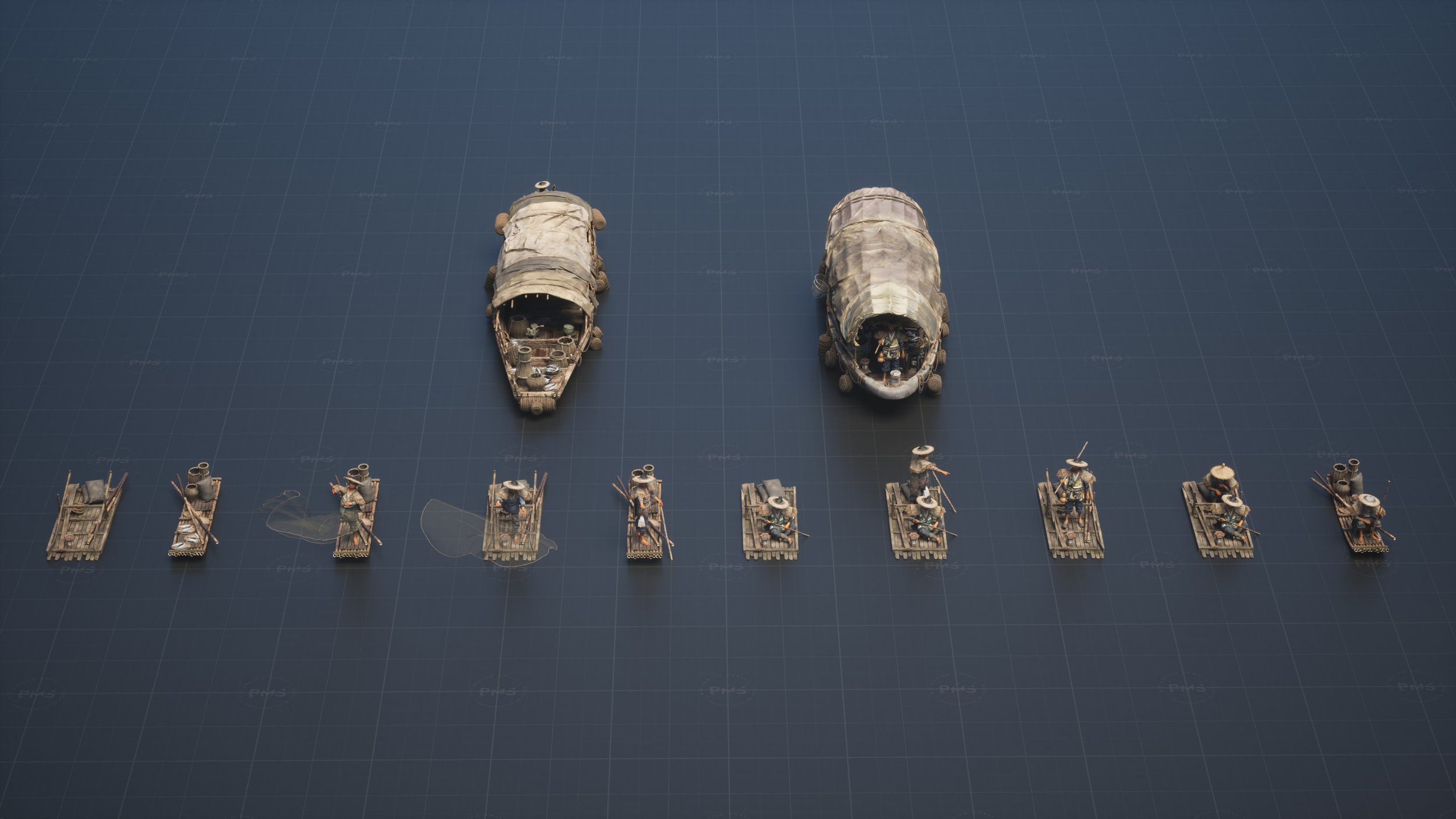 This bundle includes 300+ items: 4 Fully rigged modular CROWD characters (Provided with 77 preset poses and color variations), 4 highly detailed HERO Buildings with decorative elements, Day and Night setups, 2 Sampan and 2 Raft assemblies, Market and Food Cart set pieces, 200+ Set Dressing Elements, Asset Browser for Blender, UE5 Blueprints, custom Water Shader for UE5. All assets are optimized for game engines and all major 3D packages. Formats: Blend 3.6+ only, OBJ, FBX, Unreal Project.